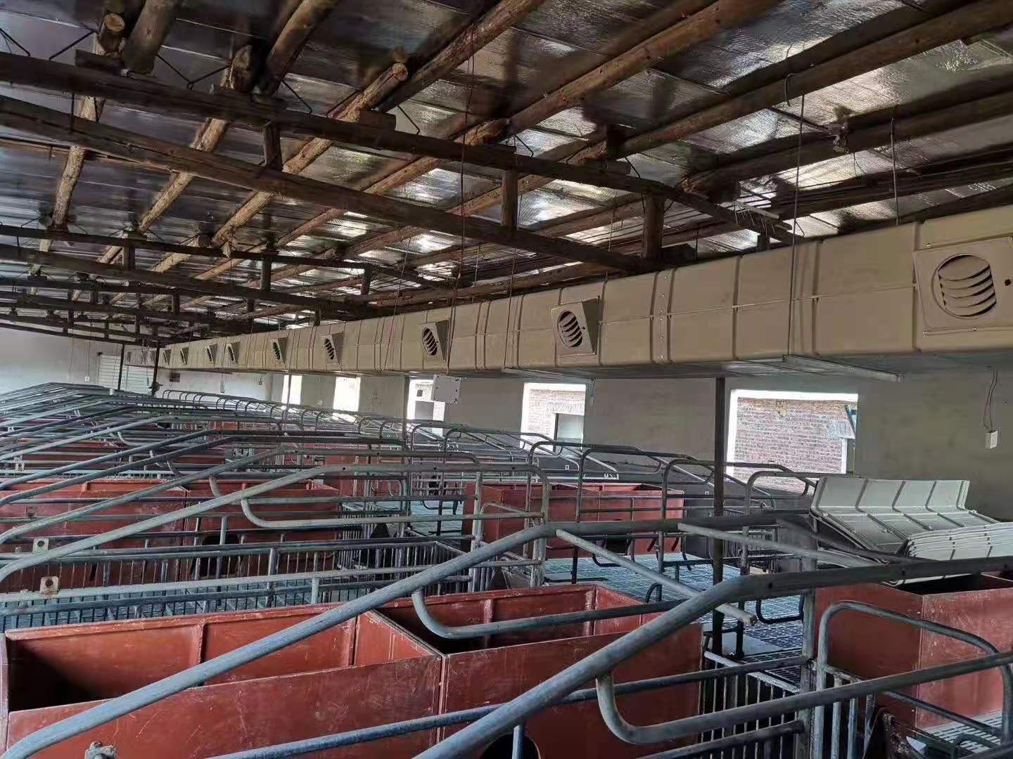 濕簾冷風(fēng)機(jī)管道出風(fēng)口位置能使溫度降低4-10℃,在設(shè)計(jì)時(shí)只需考慮采取定位送冷風(fēng)的方式,使風(fēng)口只對(duì)母豬定位欄吹涼風(fēng),而對(duì)旁邊活動(dòng)的仔豬則完全不影響,從而達(dá)到母豬定點(diǎn)降溫與節(jié)能的良好效果。
