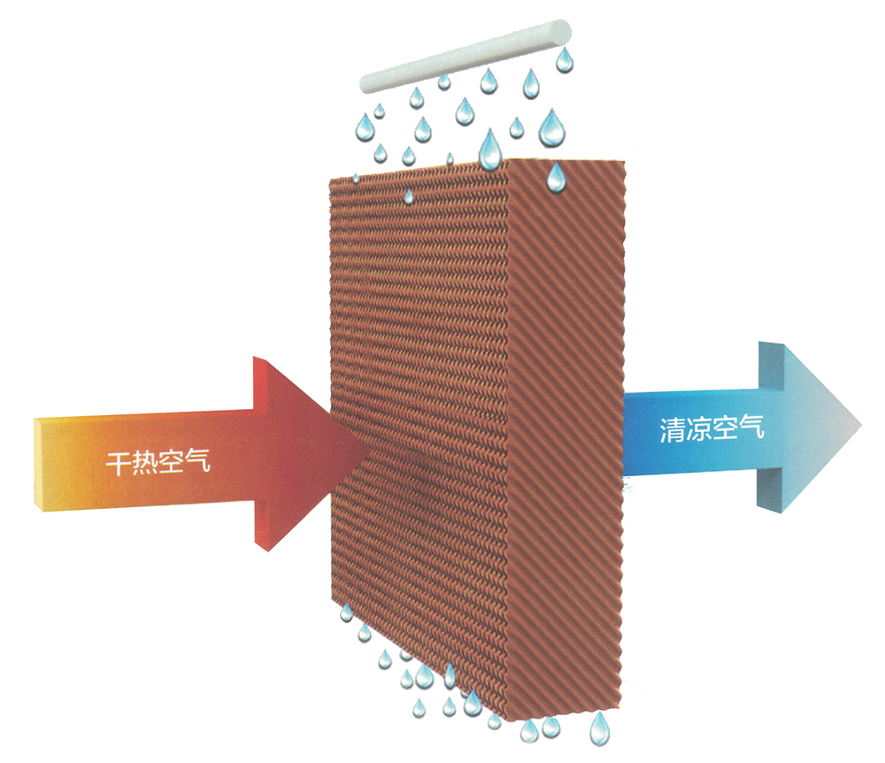 其特點是:有良好的吸水性能和通風性能,質(zhì)地結(jié)實、耐水浸泡而不變型;耐腐蝕,正常使用壽命可超過5年?!翱迫鹑R”使用的蒸發(fā)濕簾。
