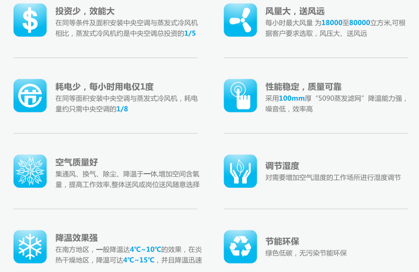 蒸發(fā)式冷氣機的優(yōu)勢: