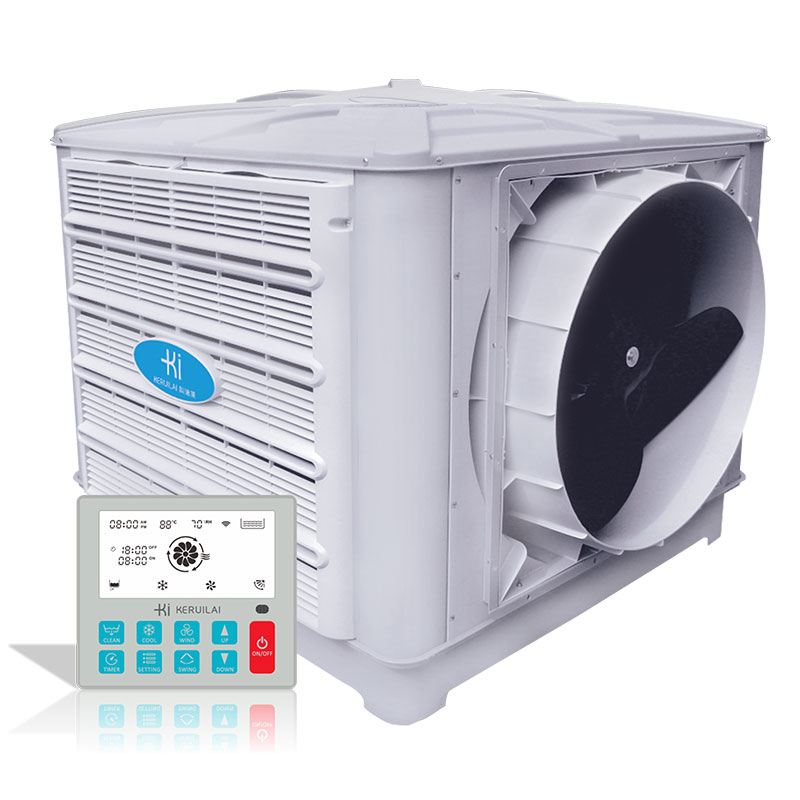 “科瑞萊”蒸發(fā)式冷氣機(jī)的核心降溫部件是“高效蒸發(fā)式濕簾”——純天然多層波紋植物纖維疊合物。根據(jù)“水蒸發(fā)吸收熱量,蒸發(fā)面積影響蒸發(fā)效率”這一自然物理現(xiàn)象,通過風(fēng)機(jī)往室內(nèi)送風(fēng),室外的新鮮空氣流經(jīng)浸水的濕簾后空氣與水份充分接觸同時(shí)吸收空氣中的顯熱,從而達(dá)到降溫、換氣、除塵、增加室內(nèi)空氣含氧量的目的,特別適用于高溫車間及人群密集的工作場所。